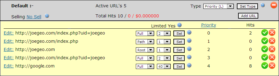 If we then add the URL http://JoeGeo.com/index.php then the limiters will be set to the following